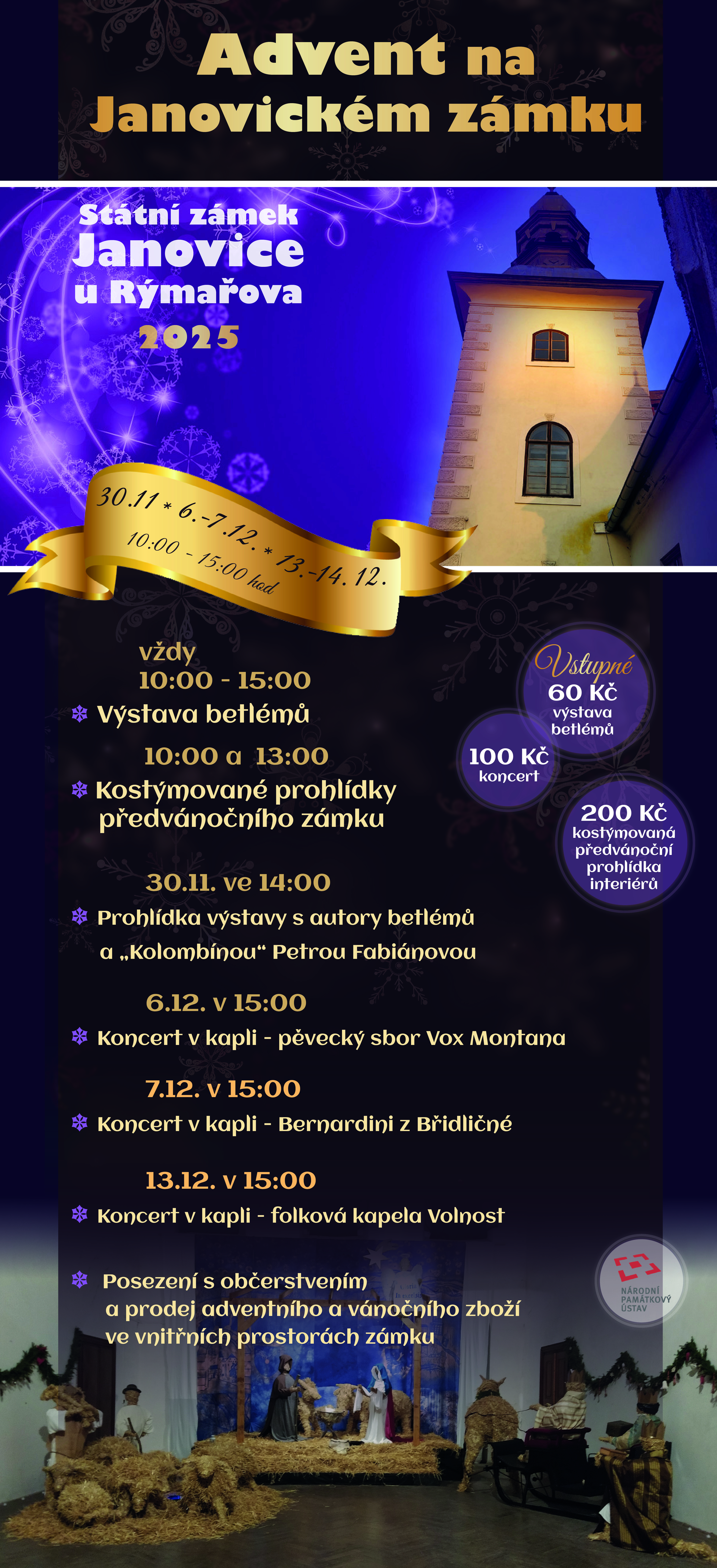 Vstupné pouze na výstavu betlémů je 60,--Kč a vstupné pouze na koncert je 100,- Kč.